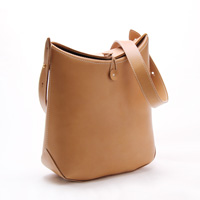 厚手の革でできたバッグはかさばるので、収納時に便利な折りたたみ式にしました。「一見普通のバッグだけど実は折りたためる」という遊びとして捉えていただけたらと思います。