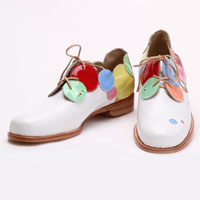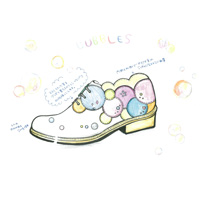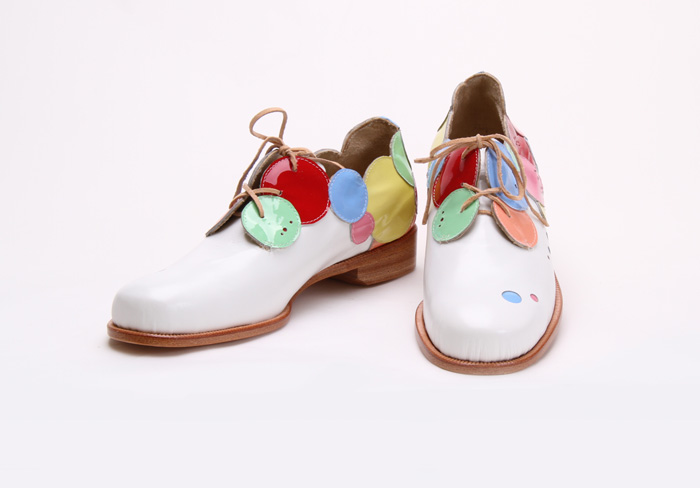 黒や茶色で重たいイメージになりがちな革靴を軽やかなイメージにしたく考えました。テーマはしゃぼん玉。鮮やかな色の革を何色も使用し、いろんな形のパンチングでしゃぼん玉のファンタジーな雰囲気を表現しました。