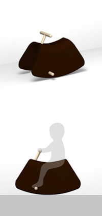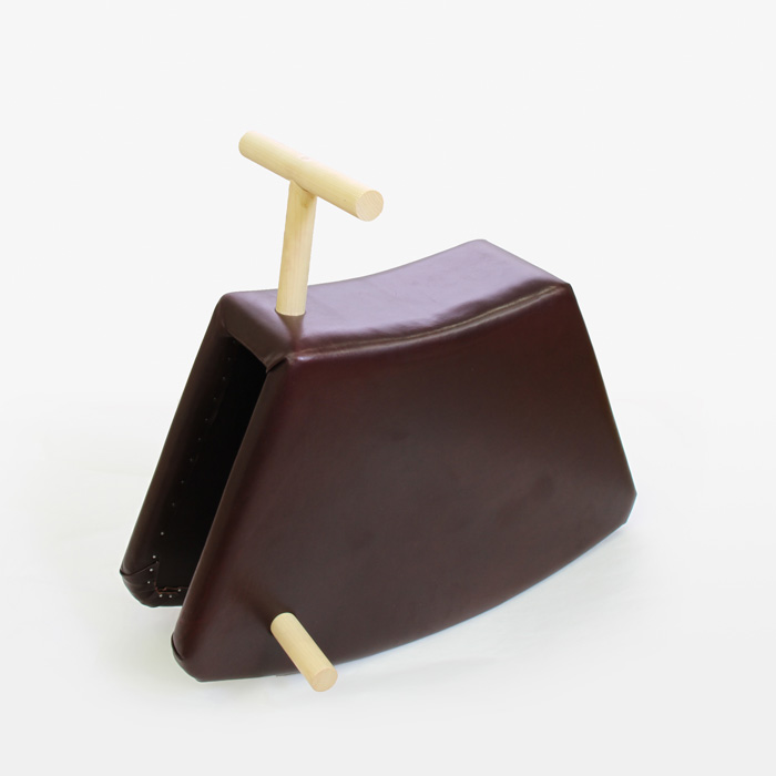馬の鞍からインスピレーションを得た木馬のように乗って揺らし遊べる乗り物。上質な革に子どもの頃から触れられる子ども用おもちゃを目指しました。