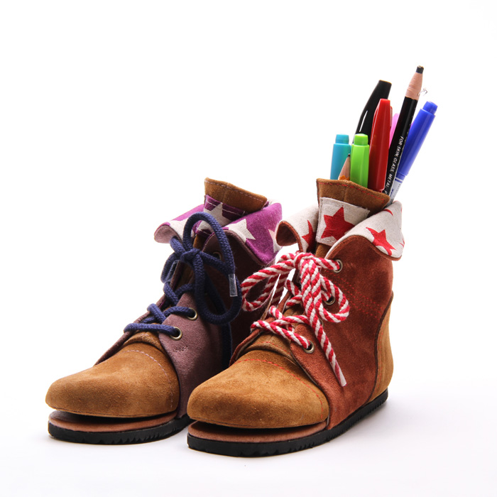 見た目は革靴(ブーツ)。リアルでこんな靴売ってるんだ、と思ったらえんぴつ削りの機能が付いた文房具。ペンスタンド、えんぴつ削りとして使えて、インテリアとしても使えます。