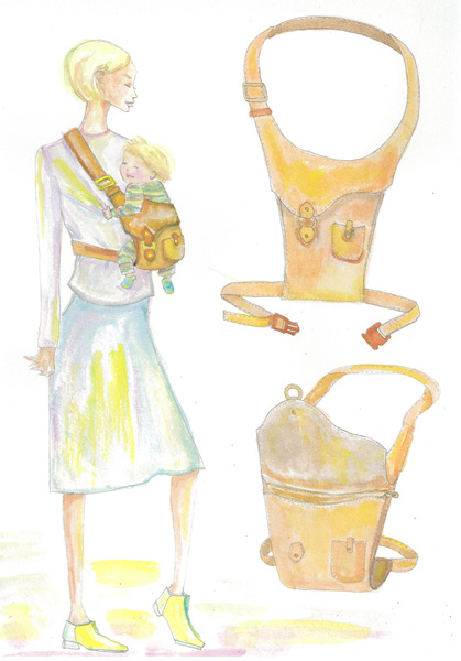 テーマはバックとしても使える赤ちゃんの抱っこ紐です。最近では働きながら子育てをする方が多いので、バックの機能も合わせ持った抱っこ紐を作りたいと考えました。子育て後にも仕様出来るので、長い間愛用してもらえたらと思っています。