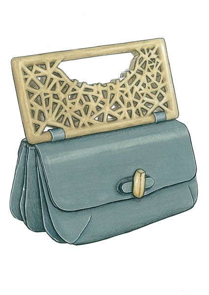 木の持ち手と革の胴コンビで鞄を作りました。金具も加工し、木で出来ています。革と異素材を組み合わせたデザインを探りながら作ったものです。