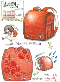 「晴れの日も、雨の日も楽しめるカバン」があればいいな、と思いこのアイデアを提案します。ランドセル等に使う事で、いつでもどこでも、どんな日にも、一緒に走り回り、新しいキッカケや発見に出会うための相棒になってほしいと思います。