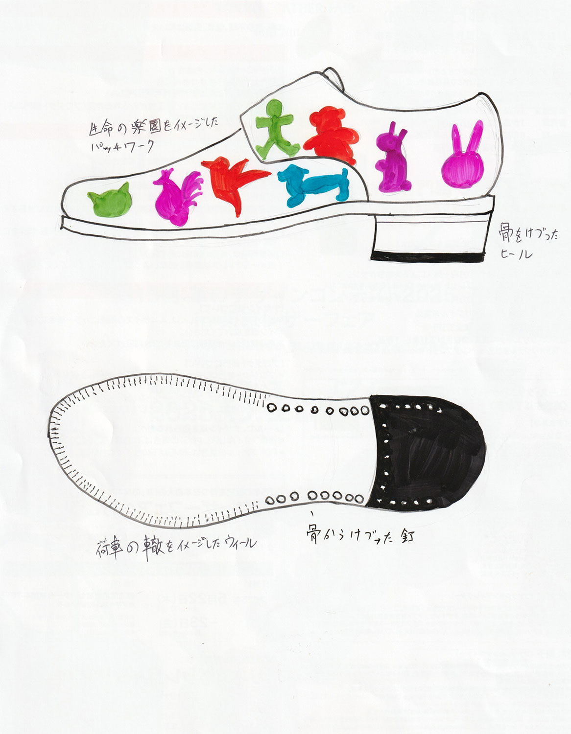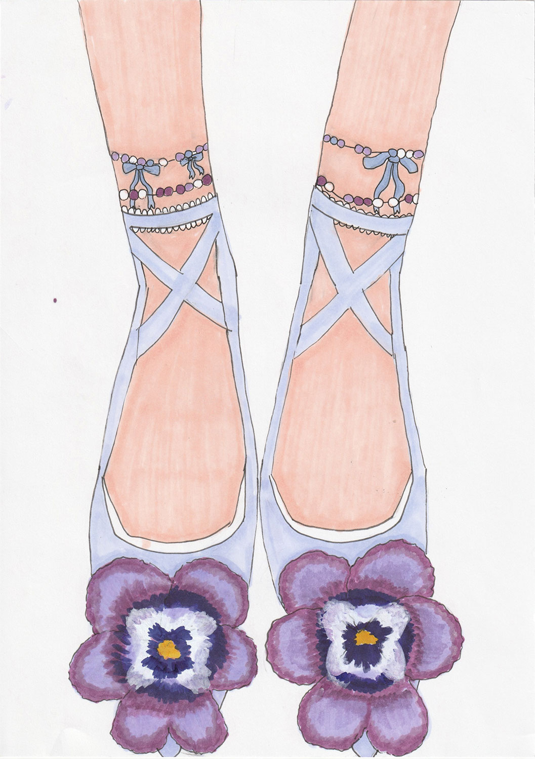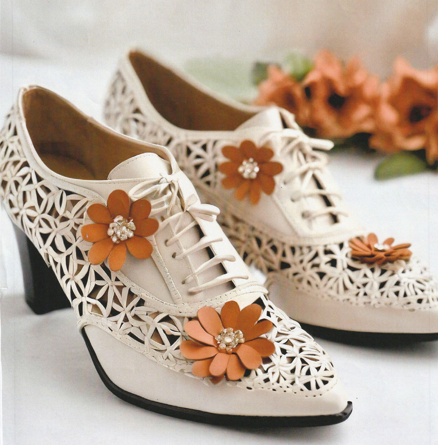 花と花で繋がる靴