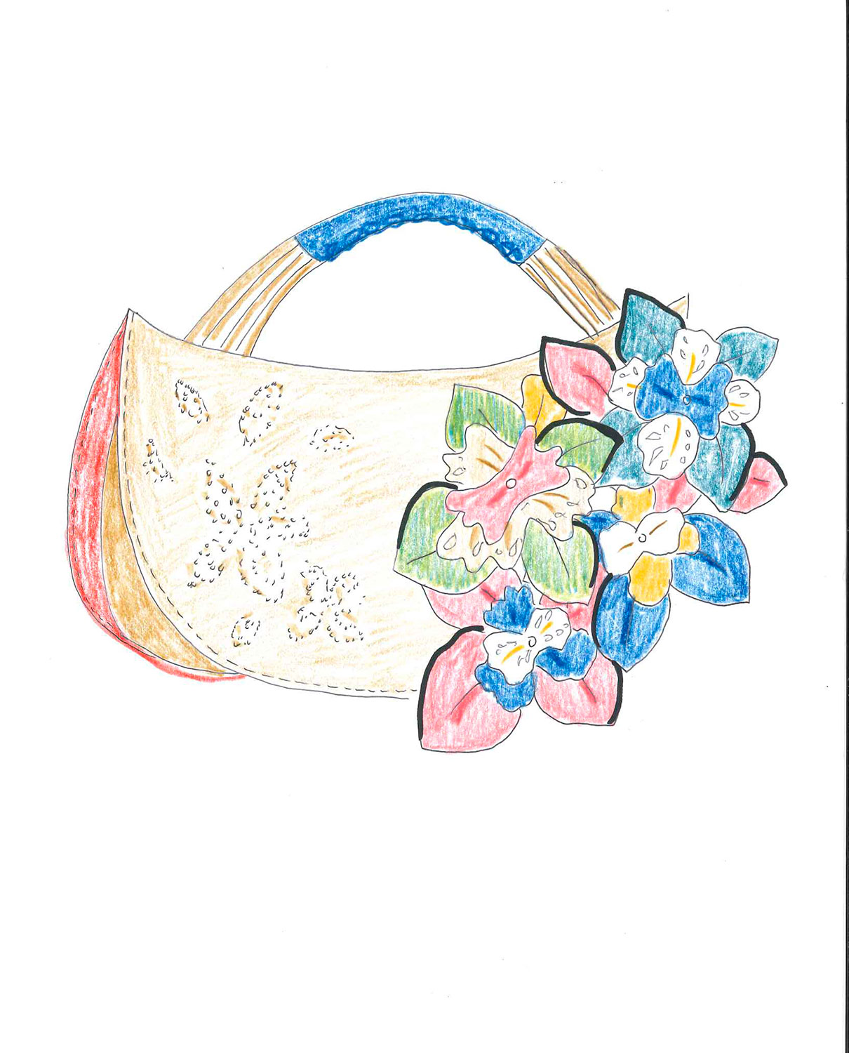 切り絵風、花モチーフバッグ